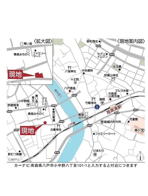 | 交通 | JR八戸線「陸奥湊」駅まで徒歩10分 | |||